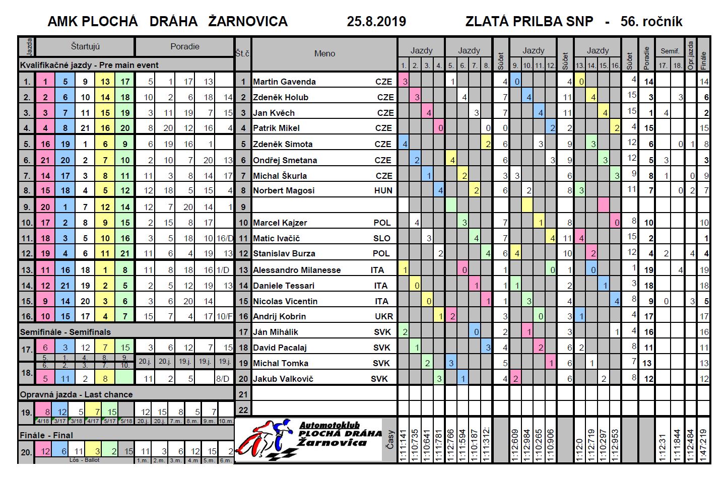 Dnes 25.8.2019 napísala história Zlatej Prilby svoju ďalšiu kapitolu, tentokrát päťdesiatu šiestu. Najstaršie motoristické podujatie ponúklo množstvo zaujímavých súbojov a nie raz až do posledného metra pred cieľom.