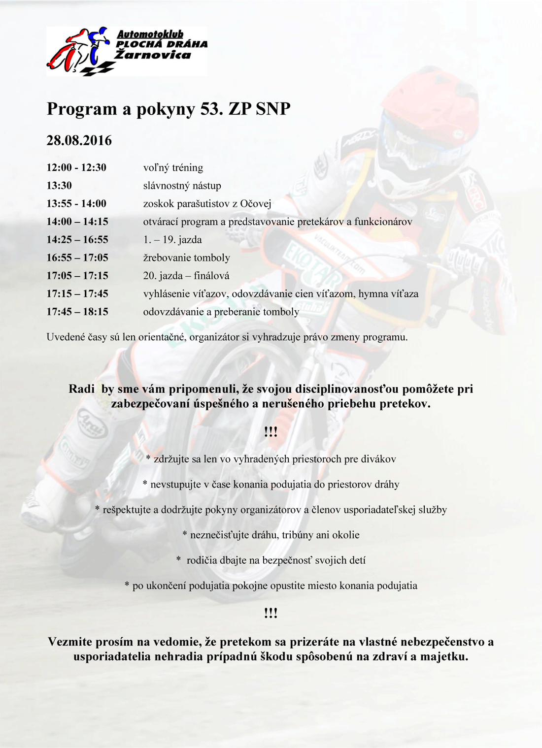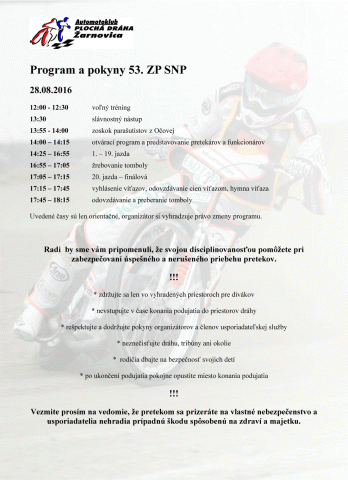 Radi by sme vám pripomenuli, že svojou disciplinovanosťou pomôžete pri zabezpečovaní úspešného a nerušeného priebehu pretekov.