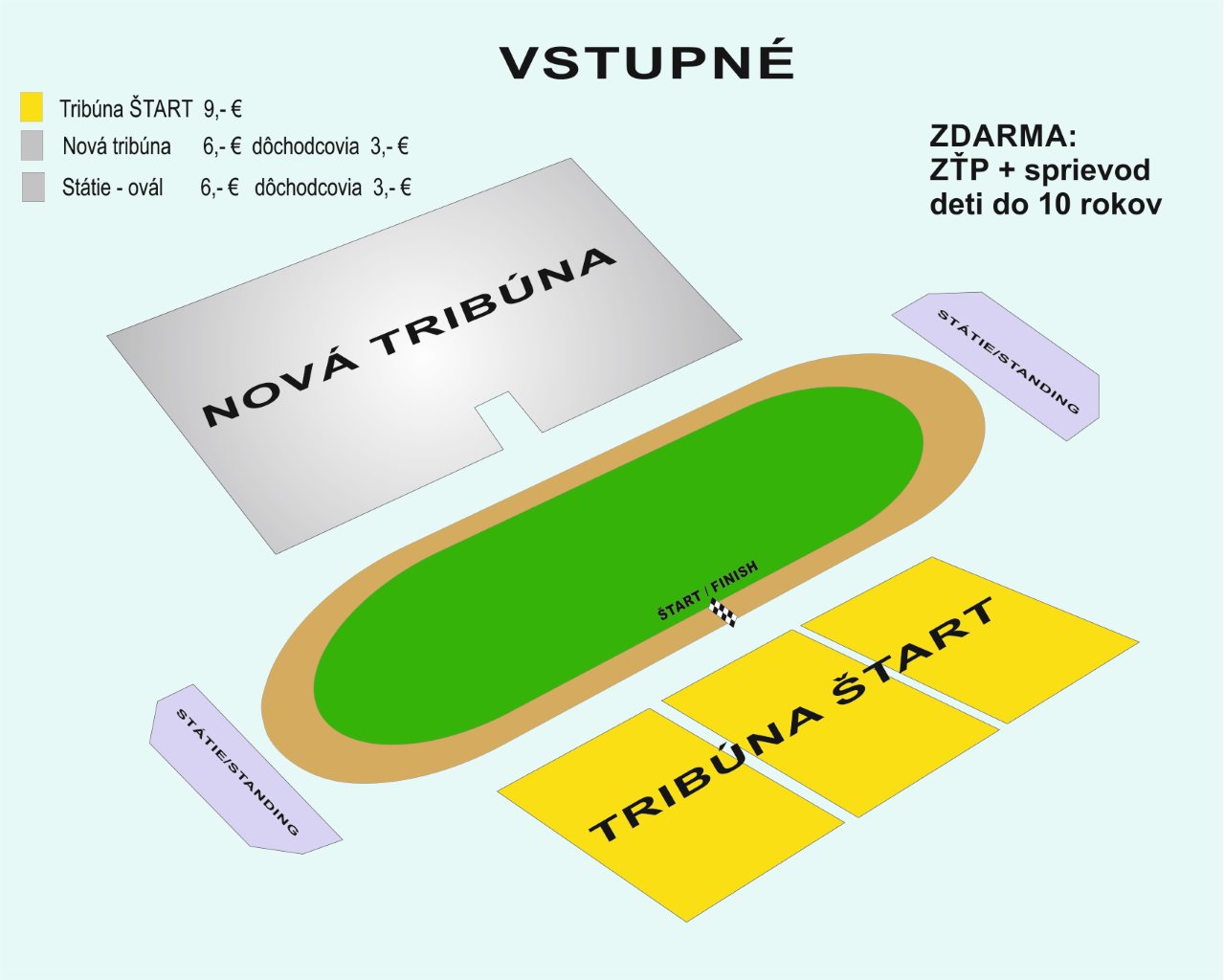 Na „starú“ tribúnu na štarte je vstupné 9,- € a neplatia tu žiadne zľavy. Na novú tribúnu a na ovál je základné vstupné vo výške 6,- €, dôchodcovia majú vstupné vo výške 3,- €.